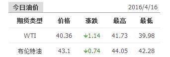 2016年4月18日国际原油价格表